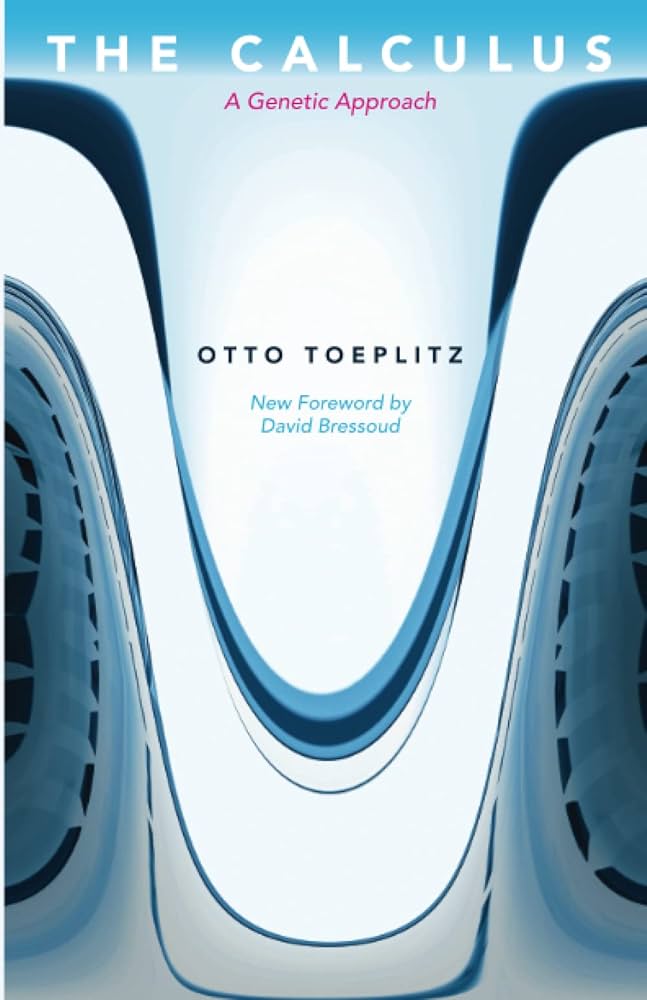 Otto Toeplitz, The Calculus: A Genetic Approach Toeplitz turns high-school calulus inside-out: starting with infinite series and the integral, and only then looping back to the derivative. Why? Because that’s how it was created. Understanding the kinds of problems that Newton, Leibniz, and others were trying to solve, and how their new methods helped, makes the entire subject snap into focus. |