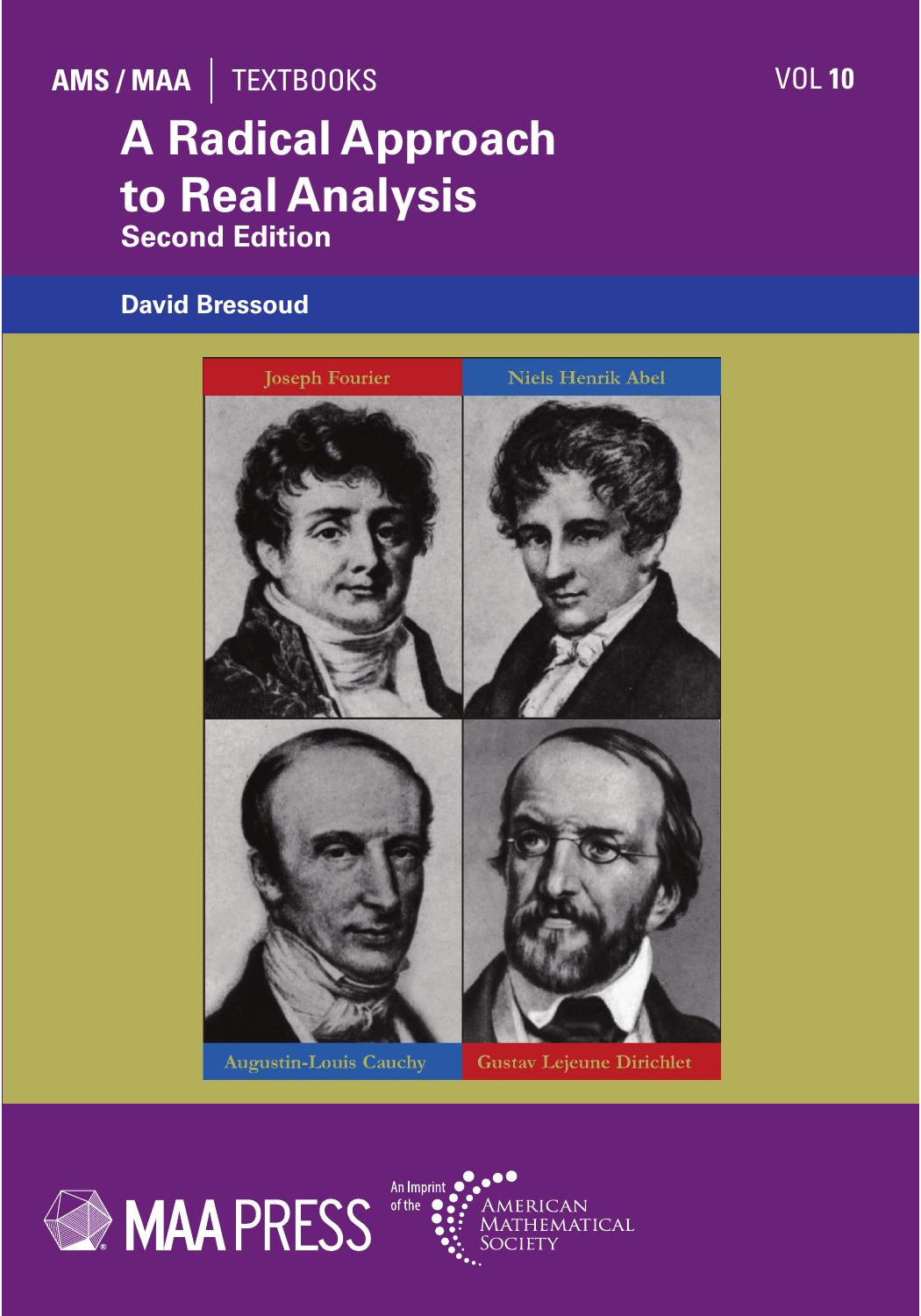 David Bressoud, A Radical Approach to Real Analysis At the start of the 19th century, Joseph Fourier developed a new class of methods that worked brilliantly on real-world problems but sometimes produced bizarre, even nonsensical “functions.” Bressoud’s book tells the story of how two generations of mathematicians rebuilt calculus from the inside out to make sense of these new techniques. This is mathematics writing of the highest order; it has the page-turning suspense of a good historical mystery novel. |